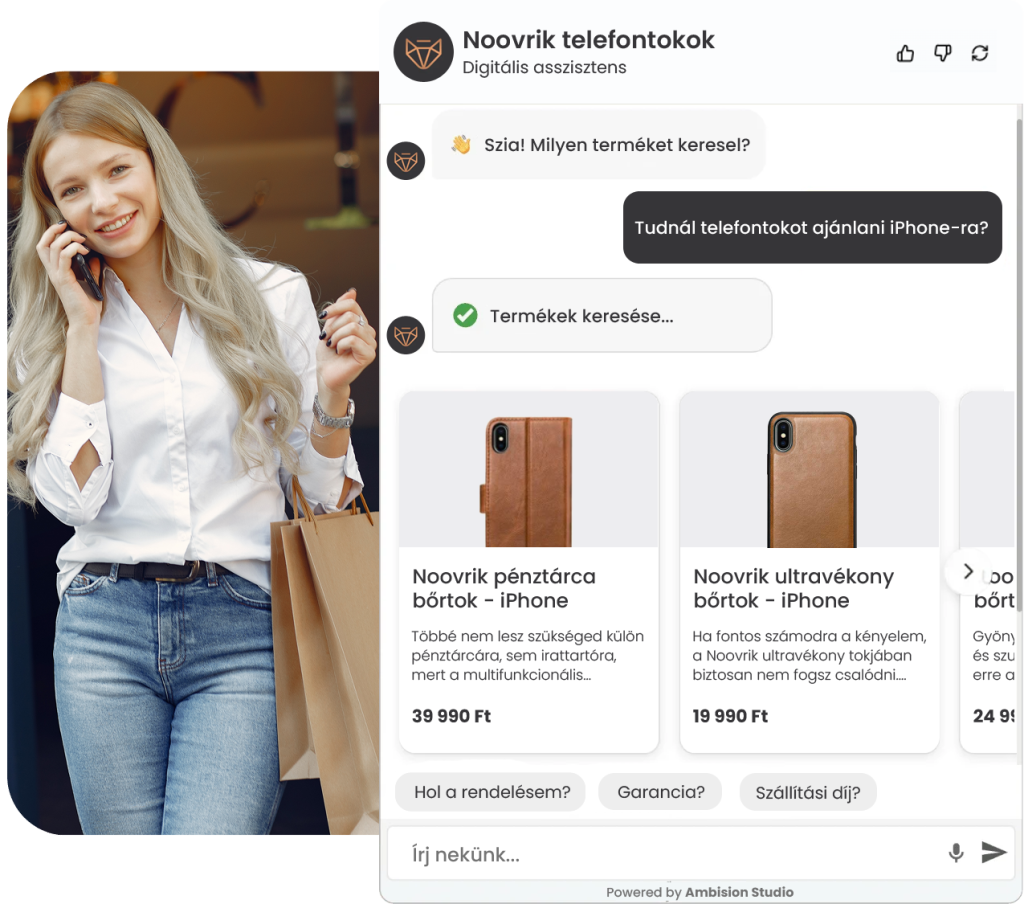Termékajánlások, rendeléskövetés, ügyfélkérdések gyors kezelése.